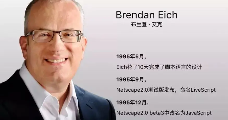 这不得不说到 JS 的创始人 Brendan Eich 和 Brendan Eich 所在的网景公司。Brendan Eich 是函数式编程的信徒,并且还比较讨厌 JAVA,但是网景公司的创始人都是 java 的教徒,当时 java 作为唯一的跨平台语言魅力十足。于是 Brendan Eich 就不得不在公司的压力之下使得 JS 有很多面向对象的特性。为什么说 Brendan Eich 比较讨厌 JAVA 呢,看下面这句话:
