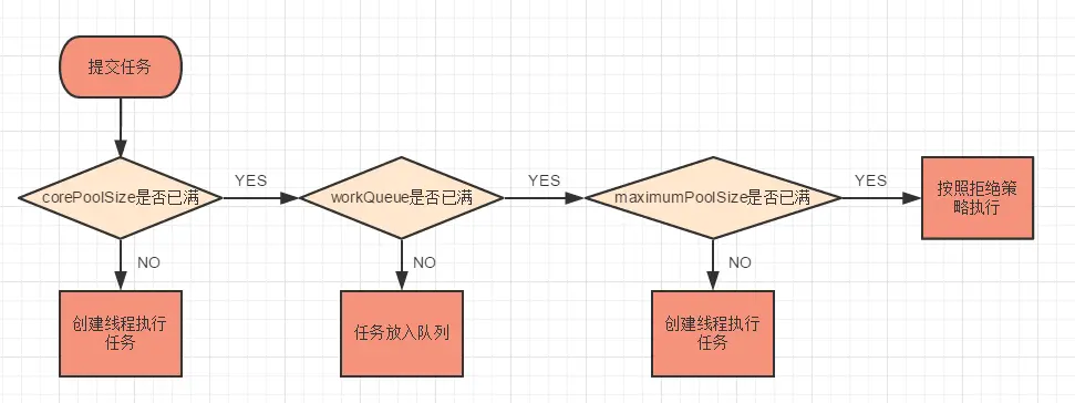 拒绝策略,当提交任务数超过maxmumPoolSize+workQueue之和时,任务会交给RejectedExecutionHandler来处理。Java线程池框架提供4种策略:四种拒绝策略