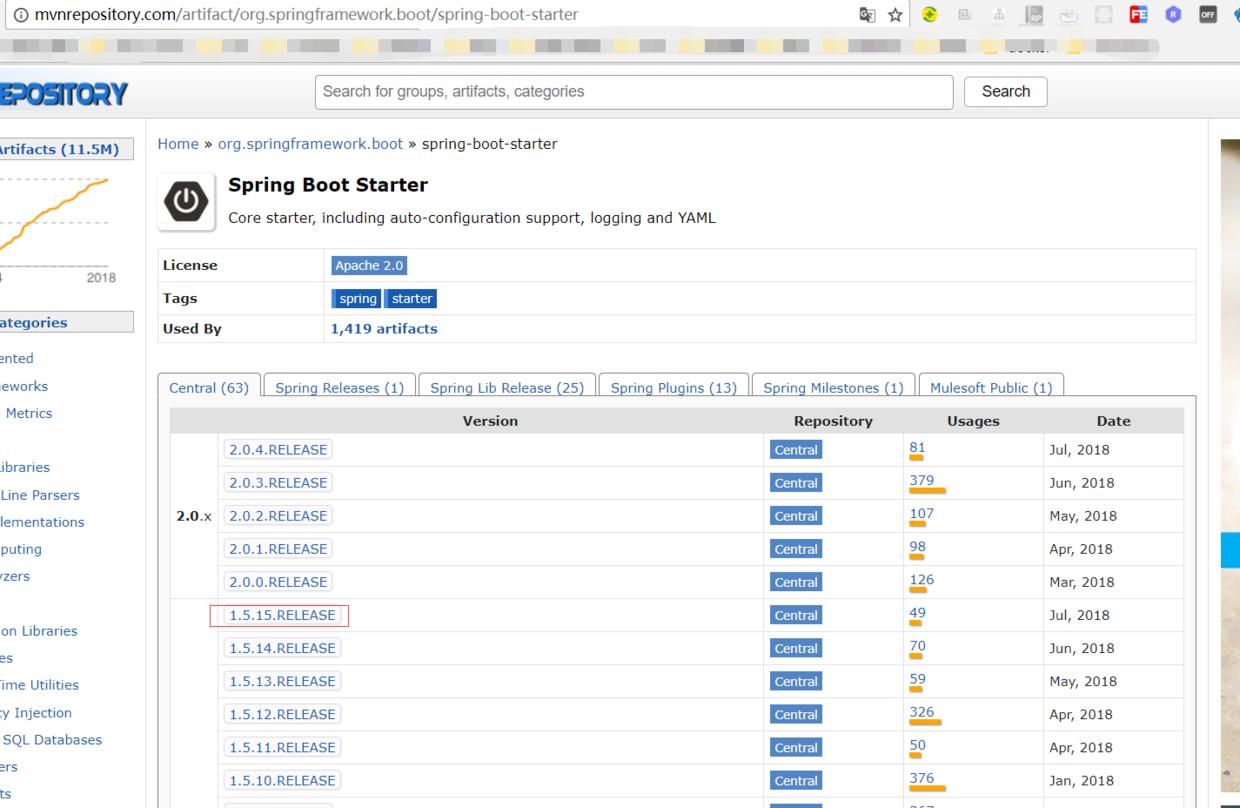 双击pom添加springboot的maven,查看maven的仓库中,springboot(1)的最后一个版本是1.5.15release直接使用1.5.15release!