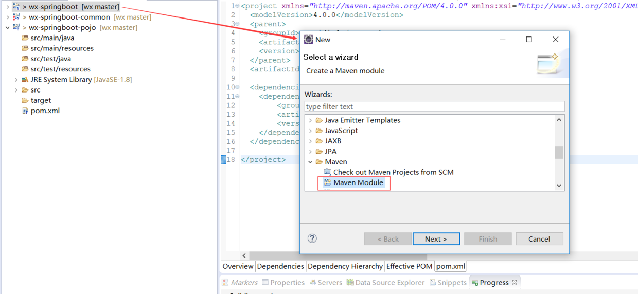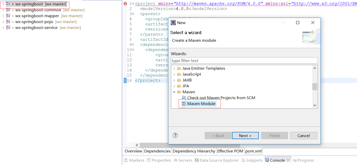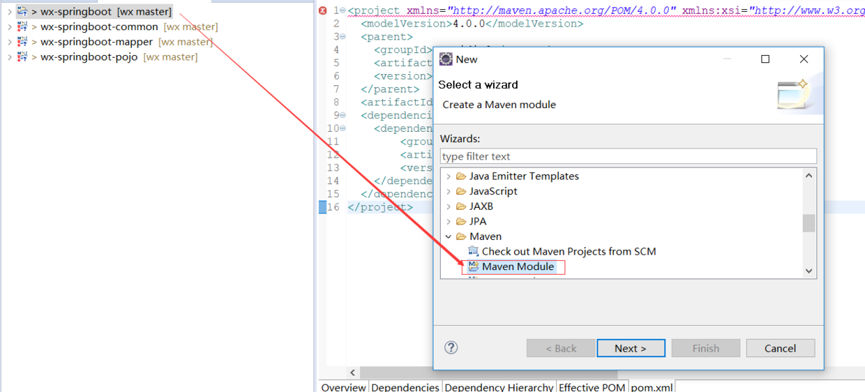根据下面的图,我们来建立下对应的springboot的聚合项目。源码:https://github.com/limingios/wxProgram.git 中的wx-springboot
