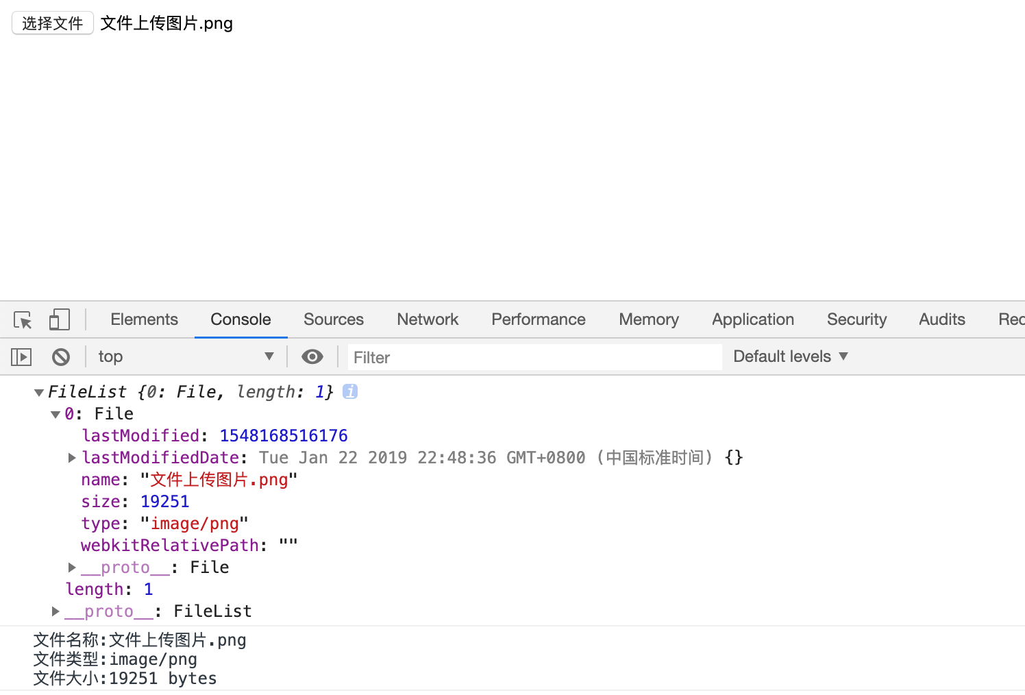 `文件名称:${files[0].name},文件类型:${files[0].type},文件大小:${files[0].size} bytes`