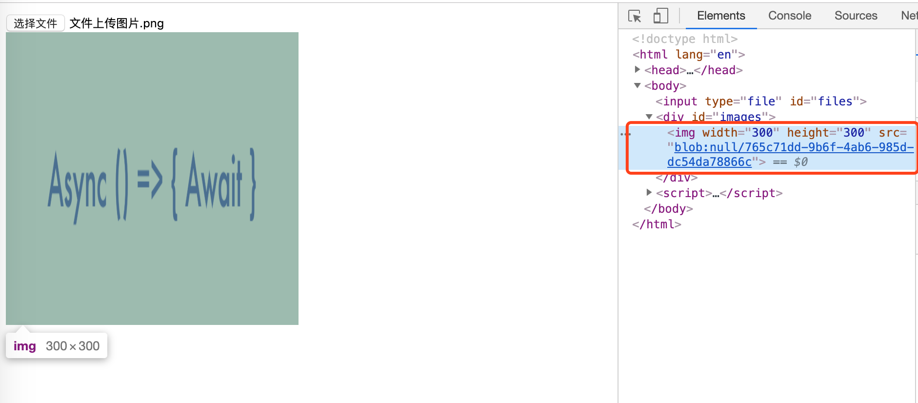 images.innerHTML = `<img width='300' height='300' src=${url} />`