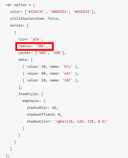 radius: '70%', // 设置环形饼状图, 第一个百分数设置内圈大小,第二个百分数设置外圈大小