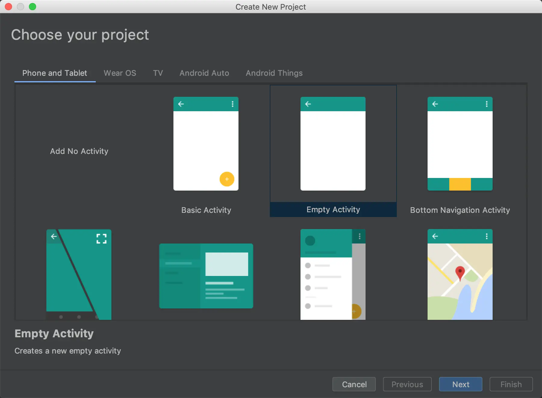 对,就是选中的那个,然后Next,选各位看官喜欢的属性,直到Finish就好了。我是沿用的旧设置,Android版本用的是4.4,语言用了Kotlin