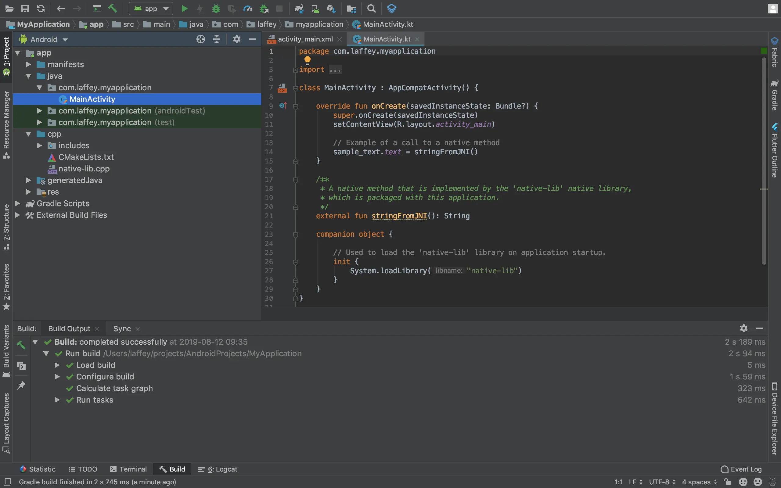 MainActivity里面是Kotlin内容,Cpp里面是JNI内容。