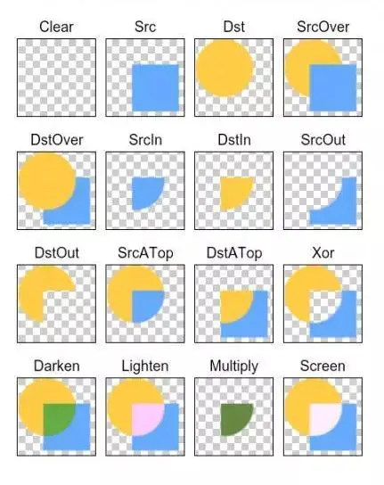 2:利用各种图形重叠区域的api及模式,产生效果,但可能会有api版本问题