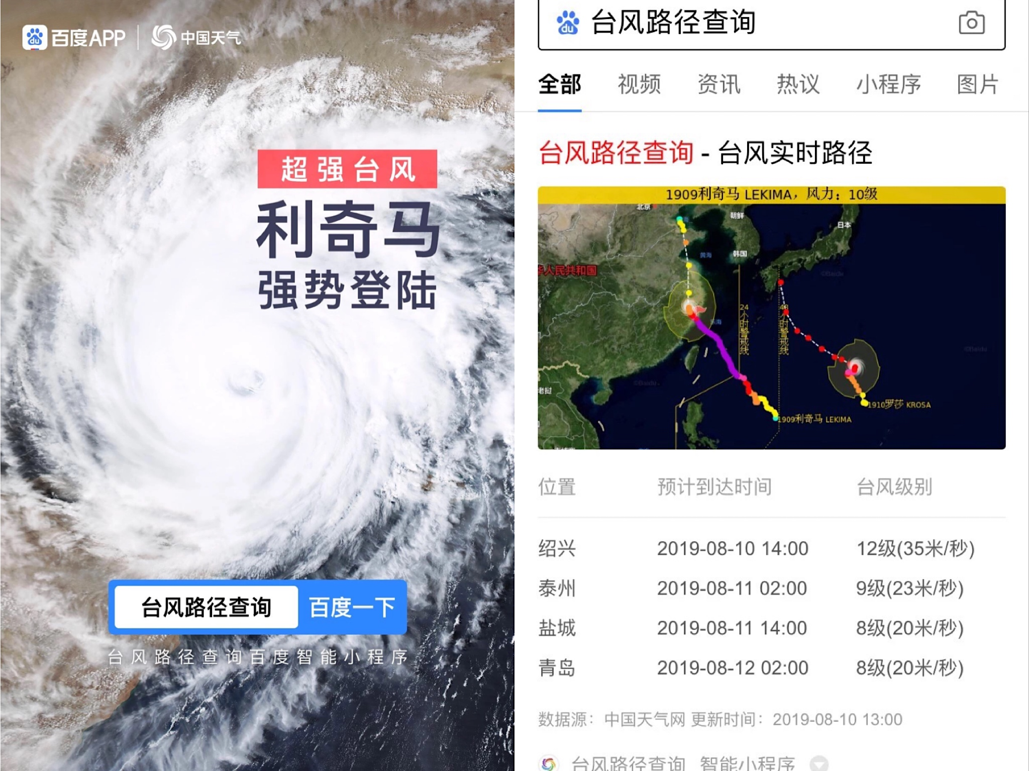 台风“利奇马”来袭,百度智能小程序带你实时了解台风路径
