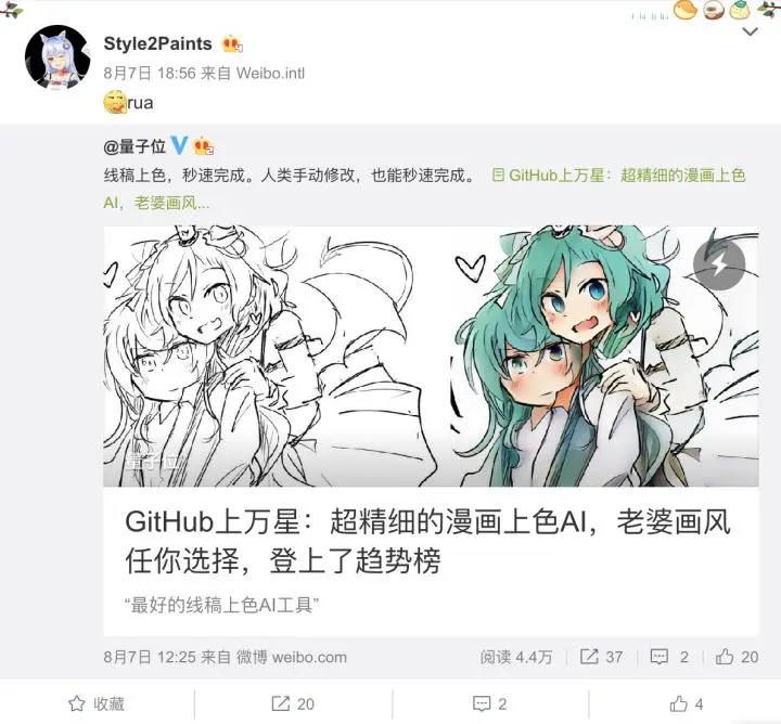 这只AI,名字叫做style2paintV4。它在GitHub摘下了一万颗星,并登上了趋势榜。