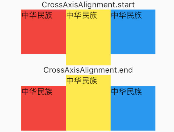 Row中则可以用改属性设置字组件头部对齐或者底部对齐,但一般采用crossAxisAlignment属性进行设置。