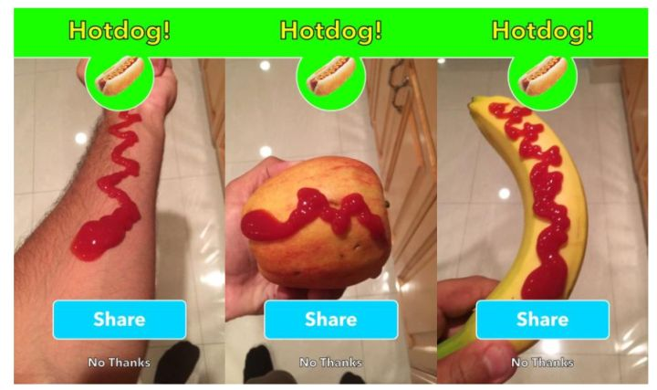在著名的Not Hotdog应用程序中发现了一个有趣的认知不确定性的例子。似乎网络从未接受过“非热狗”图像训练,包括图4中的番茄酱。如果模型输入是腿上有番茄酱的图片,那么就会被认为是热狗。贝叶斯深度学习模型将预测这种类型的高认识不确定性。