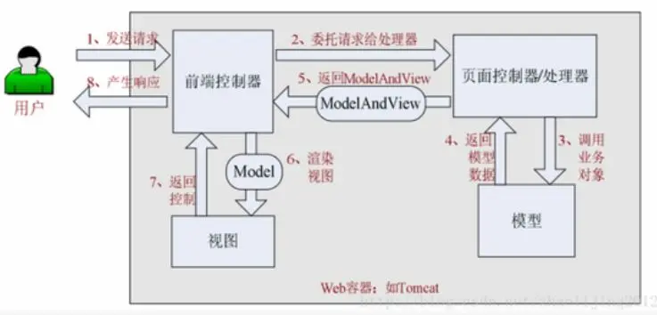 - 首先用户发送请求到前端控制器(DispatchServlet),前端控制器根据请求URL来决定选择哪一个页面控制器进行处理并把请求委托给它。