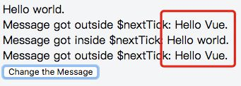 <div v-if="msg3">Message got outside $nextTick: {{msg3}}</div>
