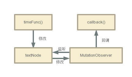 在nextTick中 MutationObserver的作用就如上图所示。在监听到DOM更新后,调用回调函数。