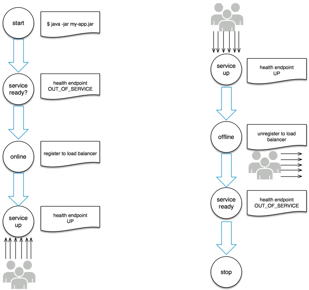 理想状态下,进程从敲下命令到真正启动并等待请求的时间应该只需很短的时间。更少的启动时间提供了更敏捷的发布以及扩展过程,此外还增加了健壮性,因为进程管理器可以在授权情形下容易的将进程搬到新的物理机器上。