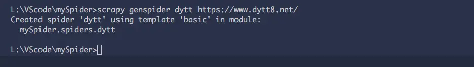 scrapy genspider spidername domain[starturl]可以创建一个爬虫,使用命令之后如图: