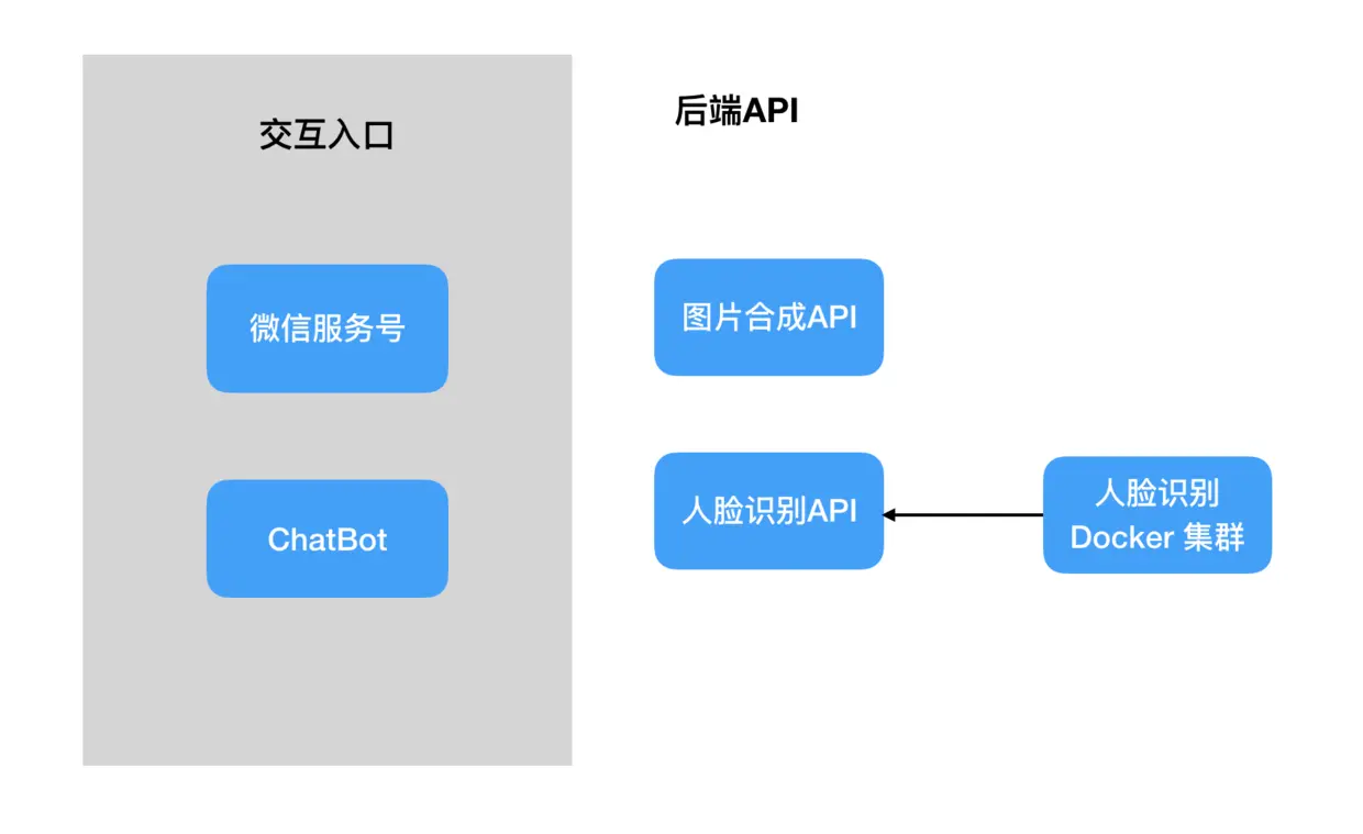 首先,我们希望第一版本是越简单开始使用越好,考虑到目前类似Google Glass之类的眼镜产品未能普及,目前最好的工具还是我们的手机,而手机中我们认为目前微信是最好的入口。 而为了让用户最快最容易上手交互,我们认为最好就是扫码直达,聊天即用,因此我们最终选用了微信服务号作为交互入口,并使用Chatbot来跟完成交互。