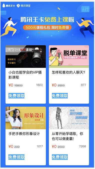 上面分析过程中大致也提到了,text组件采用span标签编译成view才能展示,image组件,在web端,采用<wx-component behavior="image" src="" />不生效,直接使用img标签代替,不过mode等image组件特有属性不会被编译过来,图片得设置高度,不然小程序端表现有点不正常,可以见上图。样式覆盖问题,见上图课程块的间隙。这里只是一个简单的活动页,可能还有其他坑还没踩到,踩到的同学可以交流下。