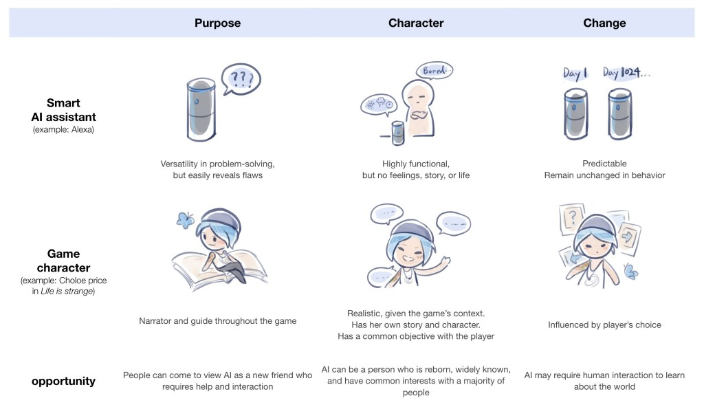 Drawing on what I learned through the techniques employed in games, I identified methods to make AI emotional and attractive.