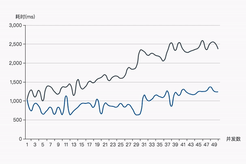 性能简析:横轴为完全在同一时刻触发冷启的Java应用个数,纵轴为冷启应用的平均与最小耗时。随着压力增大,50个Java应用同一时刻调度加冷启平均耗时2.5秒左右,100个Java应用同一时刻调度冷启平均耗时3-4秒,最短耗时1.5到2秒。