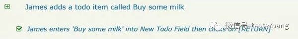 现在,假设我们要实现“添加新的Todo条目”特性。按照“添加一个新的Todo条目”的描述,这个特性会有一个验收条件。如果我们手动测试这些场景的话,它可能会如下所示: