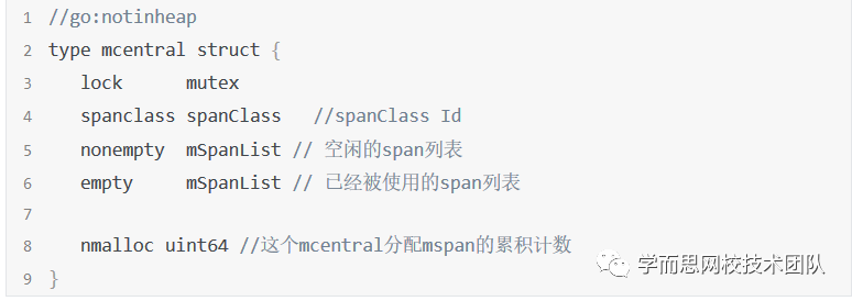 刚才我们提到mcache中的mspan都是动态申请的,那到底是去哪里申请呢? 其实当空间不足的时候,mcache会去mcentral中申请对应规格的mspan,我们来继续看一下mcentral,先来看一下结构,go1.12.6\src\runtime\mcentral.go