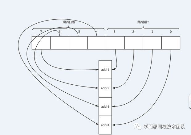 bitmap区域: 用于标记arena区域中哪些地址保存了对象, 并且对象中哪些地址包含了指针,主要用于GC