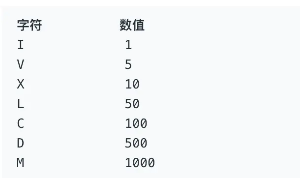 罗马数字包含以下七种字符: I, V, X, L,C,D 和 M。