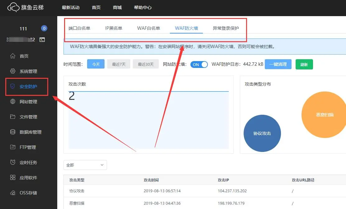 百度对服务器的安全监测很关注,所以你的服务器安全是百度最关心的,这点旗鱼云梯有针对服务器安全做了严格的工具,帮助站长通过免费的waf防火墙来防护安全,帮助站长防护木马病毒。