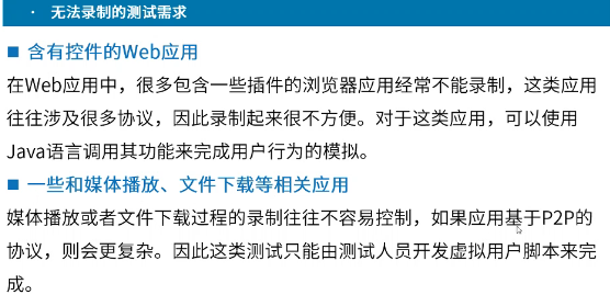 不太适合录制的业务功能点的性能测试:例如网页上http文件的下载过程,视频播放等