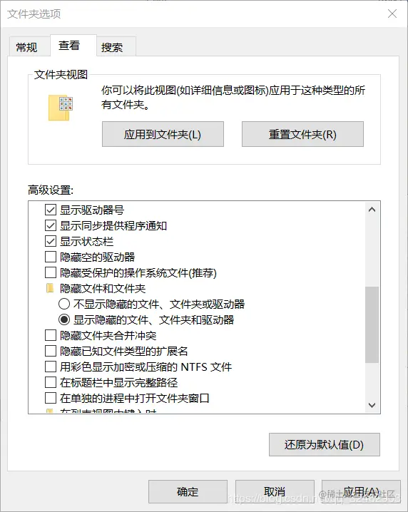 - 显示隐藏的文件、文件夹和驱动器