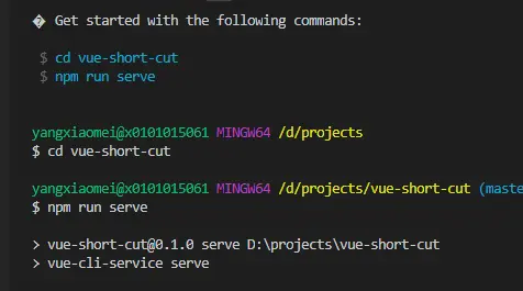 - 创建名称为vue-short-cut的项目: vue create vue-short-cut