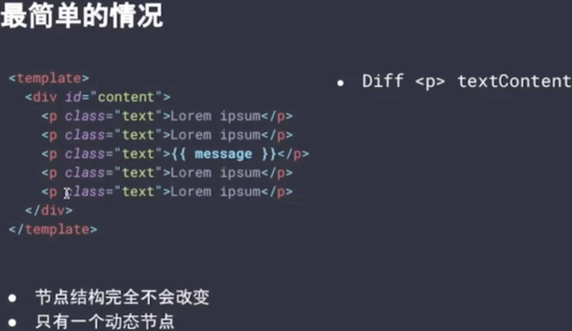 - 但如果碰到下列只有少量动态节点时,这些遍历都是性能的浪费