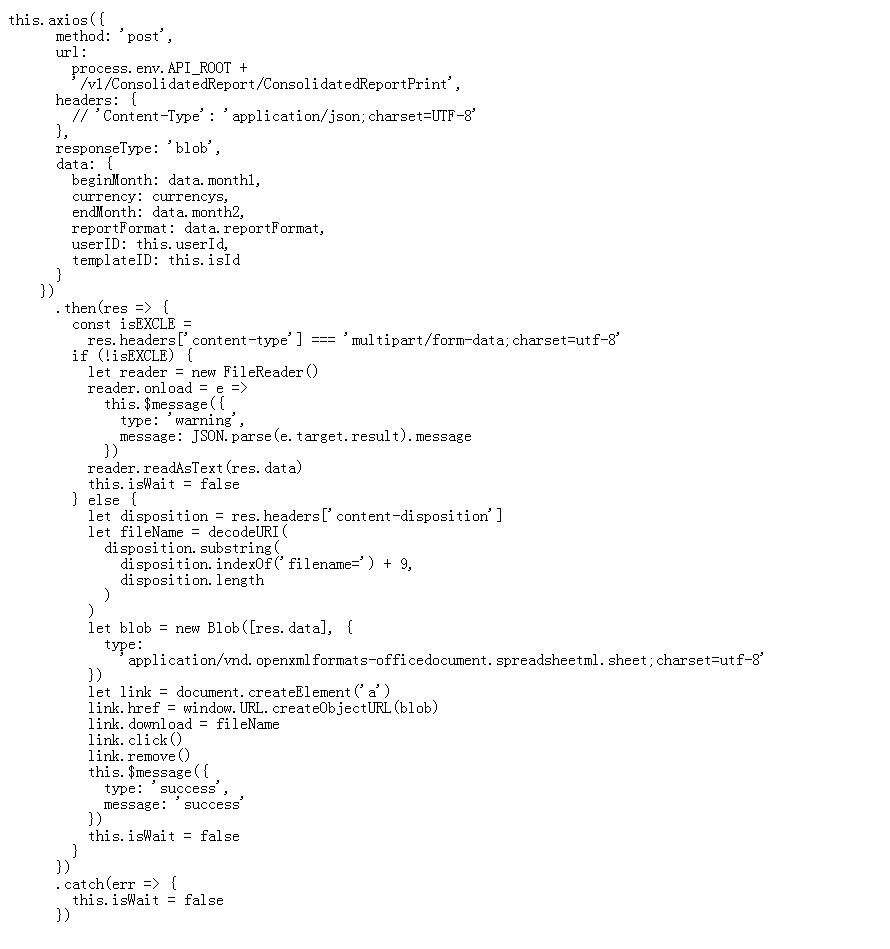 axios下载文件失败时获取不到后台返回的错误信息 Thq81869 2019-08-13 798 阅读1分钟 axios配置了responseType:'blob',后台返回的数据会被强制转化为blob类型,所以前台怎么获取也获取不到 解决的办法:是将blob转化为json格式,用到的技术点fileReader