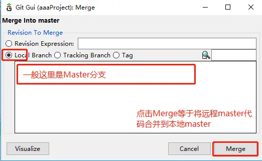 第二步:合并本地分支 点击Merge菜单,选择Local Merge。