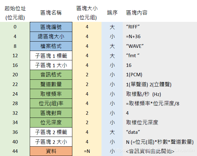 WAV:wav是一种无损的音频文件格式,WAV符合 PIFF(Resource Interchange File Format)规范。所有的WAV都有一个文件头,这个文件头音频流的编码参数。WAV对音频流的编码没有硬性规定,除了PCM之外,还有几乎所有支持ACM规范的编码都可以为WAV的音频流进行编码。
