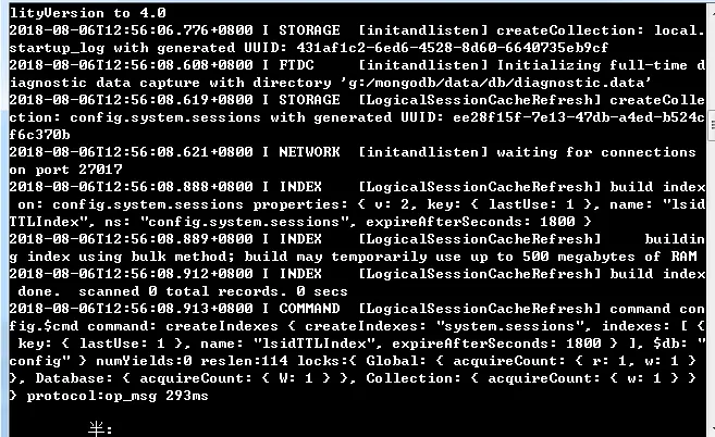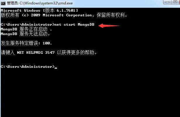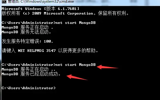 删除这个文件之后,再次运行 net start MongoDB这个命令,服务已经能启动了,说明MongoDB已经配置好了