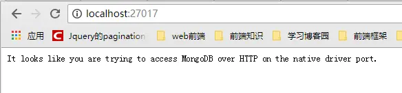 4.在浏览器输入http://localhost:27017,如果在浏览器中出现下面一段英文说明成功了