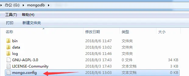 2.在mongodb新建配置文件mongo.config,这个是和bin目录同级的