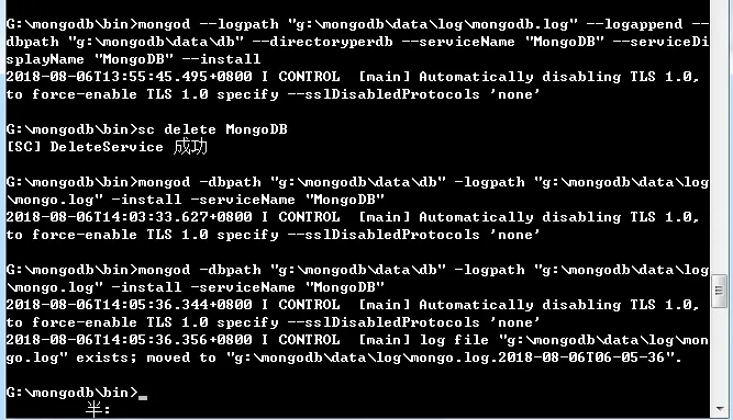 如果输入次命令出现错误的话,先删除服务sc delete MongoDB,再次输入上个命令就好了