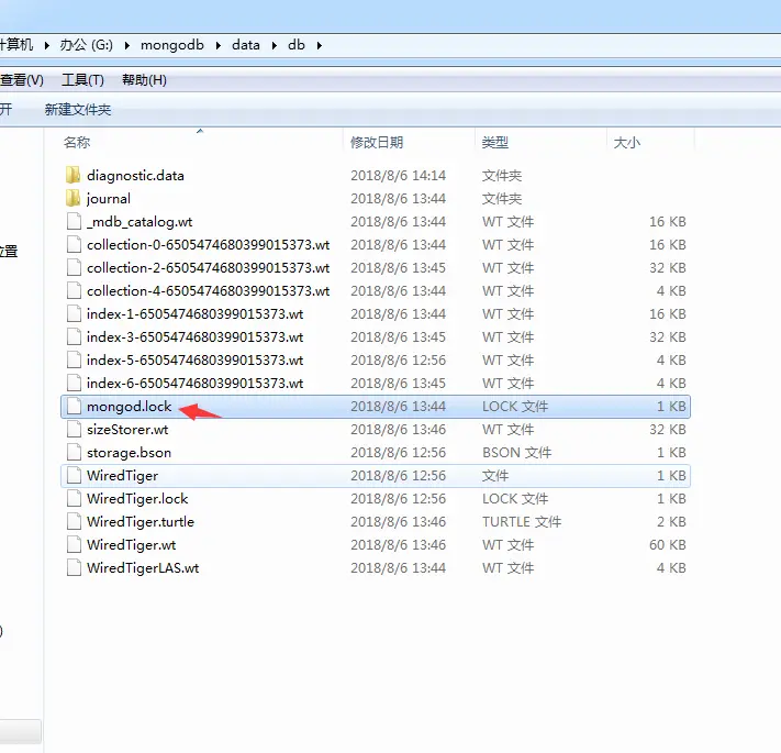 在mongodn>data>db找到这个目录,删除mongodb.lock这个文件,