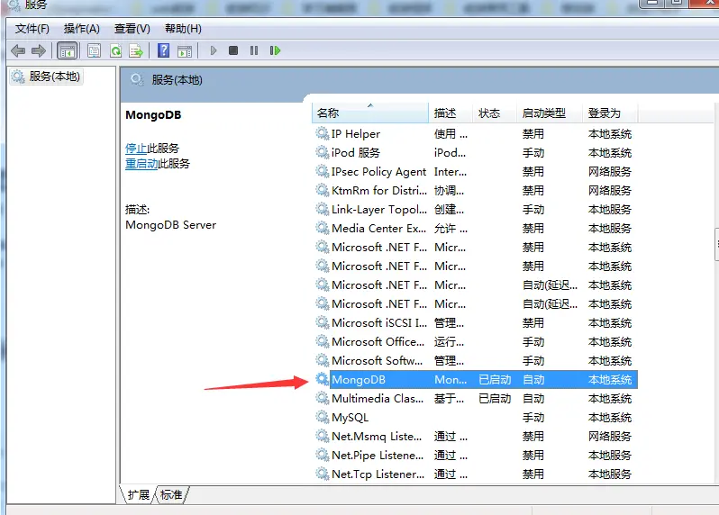 这样可设置为 开机自启动,可直接手动启动关闭,可通过命令行net start MongoDB 启动。该配置会大大方便。也不要在进入bin的目录下启动了