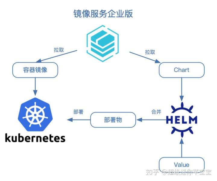 - 本文的主角 Helm 也是其中一个项目,它提出了 Chart 这个概念。一个 Chart 打包了一个应用的所有Kubernetes 资源的 YAML 文件,对外提供文档、配置项、版本等信息。而 Helm 本身则是一个命令行工具,我们可以使用 Helm 提交一个 Chart 到 Kubernetes 集群中,运行在集群中的控制器(v2 中为 tiller)会将 Chart 内的资源分别部署到 Kubernetes 集群中。
