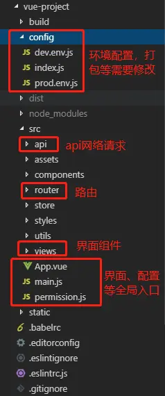 接下来就是vue demo的项目结构部分,需要了解,例如项目的加载入口,加载结构等;基础的配置文件,例如开发环境,测试环境,打包配置等。