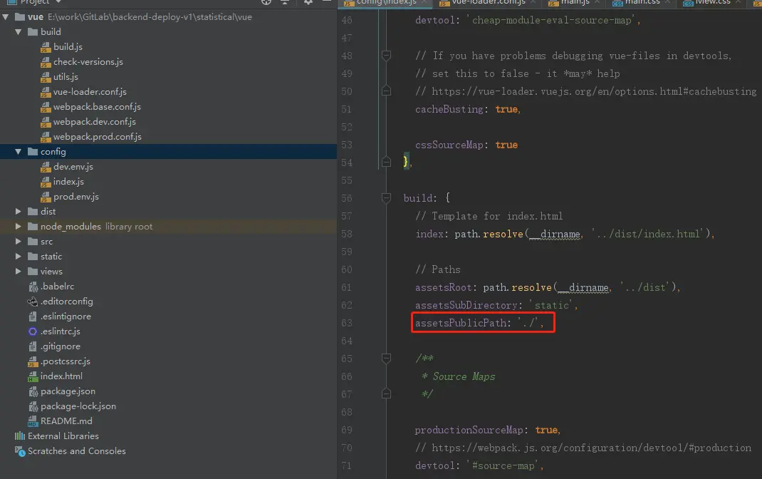 2、路径问题 index.html文件引用文件路径修改(config里面的index.js文件)