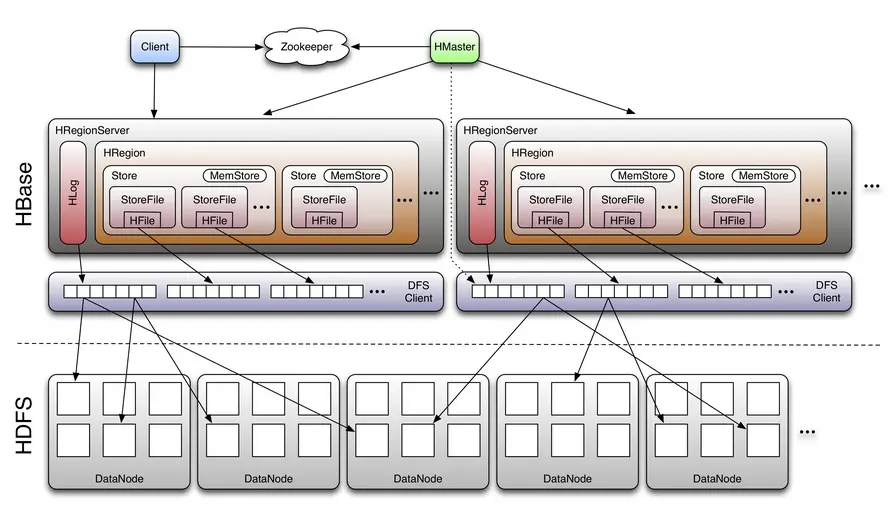 寻址过程:client-->Zookeeper-->-ROOT-表-->.META.表-->RegionServer-->Region-->client