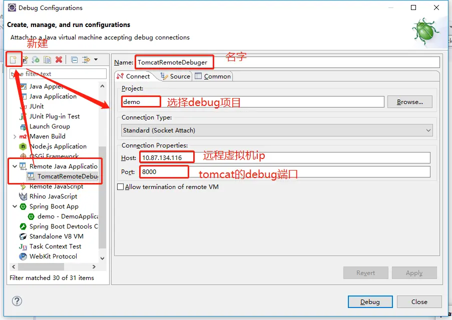 2)eclipse配置调试端口