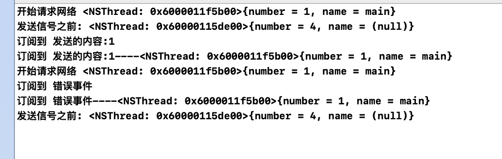 这段代码的目的是:写了一个网络请求的方法(返回得到的是一个序列),然后利用UITextField输入的内容,请求网络,返回得到的请求数据(这里假装请求了网络,实际是将inputText的内容返回了),然后将这个值发送出去。