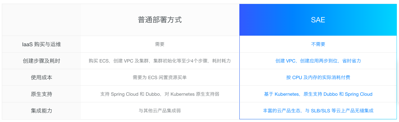 通过 SAE 帮用户屏蔽底层 IaaS 购买和运维细节,屏蔽底层镜像仓库和 Kubernetes 细节,低门槛通过 WAR/JAR 方式部署微服务应用,大幅提升运维效率,让企业聚焦核心业务本身。