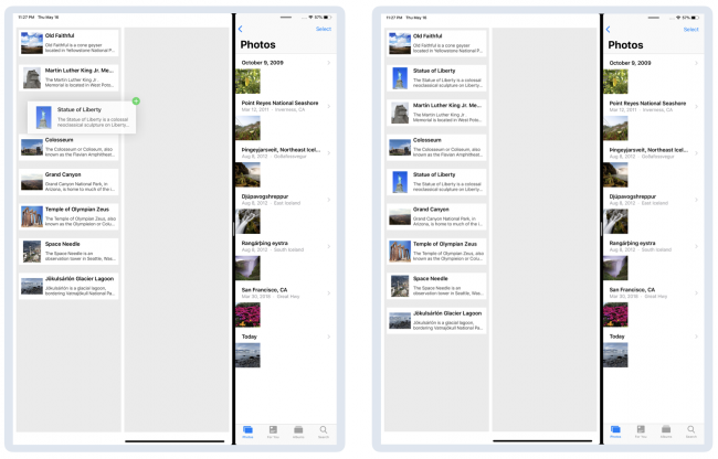 Apple在iOS 11中引入了拖放(drag and drop)功能,允许用户将项目从一个屏幕位置拖动到另一个屏幕位置。 在iPhone上,拖放仅在应用程序内可用,而在iPad上,它也可以跨应用程序使用。 这对于快速将Photos中的图像添加到电子邮件中非常方便。