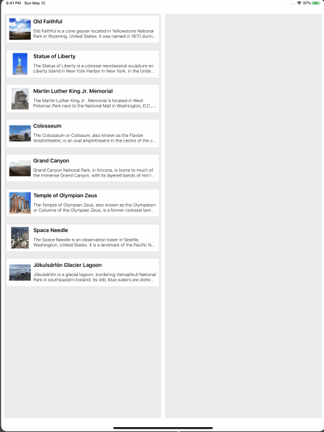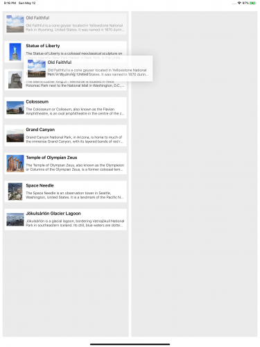 drop手势完成时调用最后一个协议方法。 您从会话中获取item provider并启动数据提取。 然后,加载第一个geocache并更新视图。